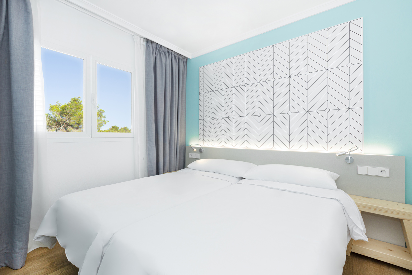 CONFIGURATION - 2 bedrooms each with 2 single beds + 1 Sofa bed in the living room - 1 bathroom