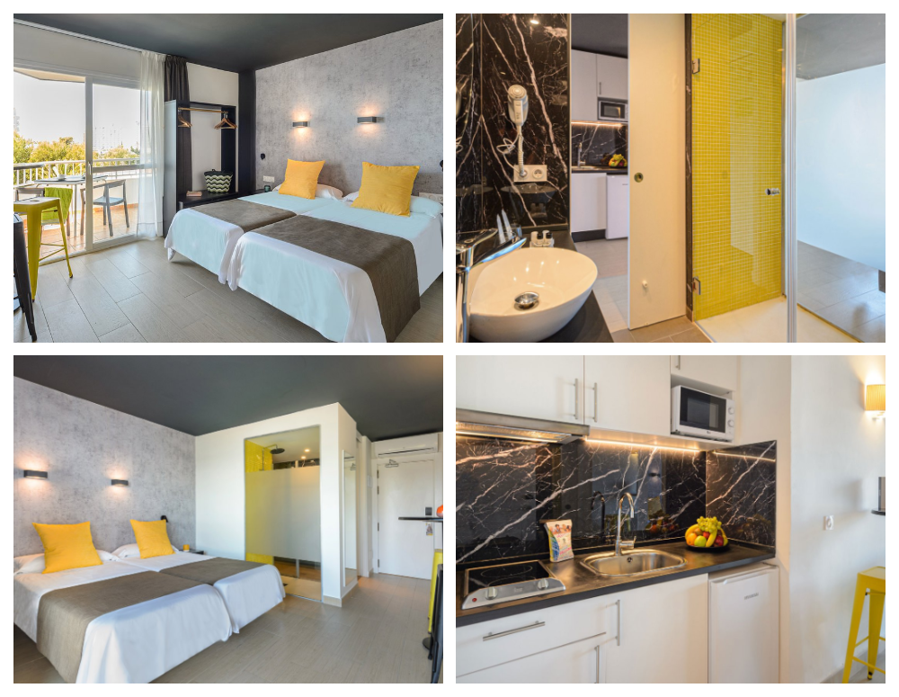 This holiday apartment type is fully equipped with a kitchenette, fridge, microwave and basic cleaning equipment. It also has a balcony.
