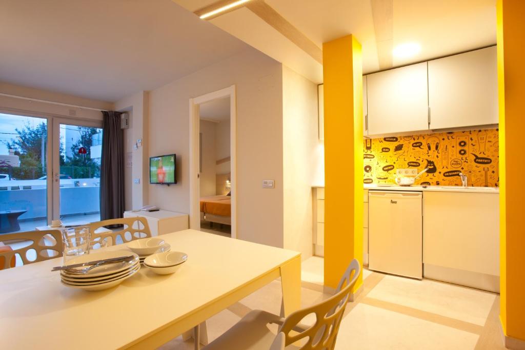 This holiday apartment type is fully equipped with a kitchenette, fridge, microwave and basic cleaning equipment. It also has a balcony. It can sleep 2 adults maximum.