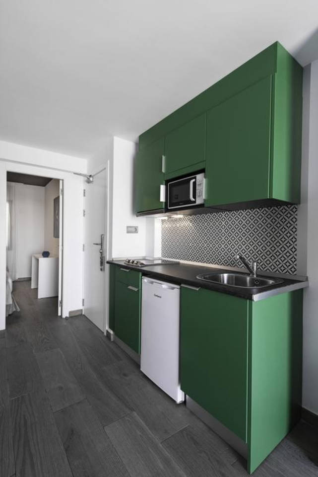 Guests can enjoy an open-plan living area with satellite TV and a small kitchen corner with a fridge and microwave. In your private bathroom you will find: Shower, Towels & Linen, Hairdryer. Only some studios have a balcony. All the others, just windows.